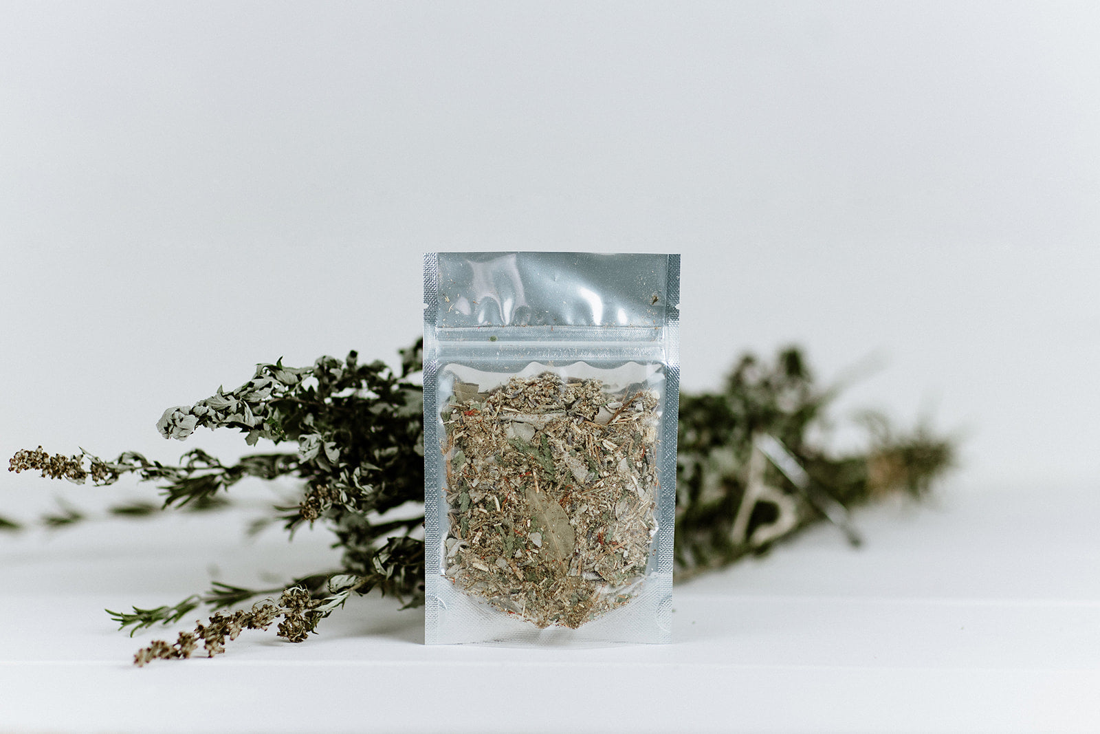 Ingredients: Mugwort, rosemary, lavender flowers, safflower petals, cedar leaf, red cedar bark, nettles, calendula flowers.